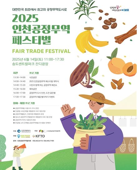 [ 타임즈 - 김시창 기자 ] 인천광역시는 오는 6월 14일 송도 센트럴파크 잔디광장에서 ‘2025 인천 공정무역 페스티벌’을 개최한다고 밝혔다.