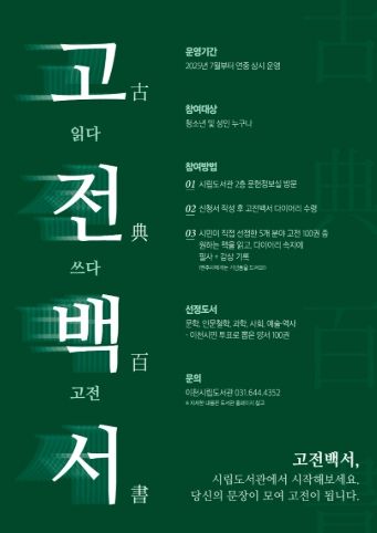 도서관 관계자는 “고전백서는 단순한 독서 캠페인을 넘어, 시민의 자발적인 독서와 기록을 통해 진정한 독서 공동체 문화를 조성하는 장기 프로젝트”라며 “고전에 대한 부담을 덜고, 즐겁게 책을 만날 수 있는 계기가 되길 바란다”라고 전했다.