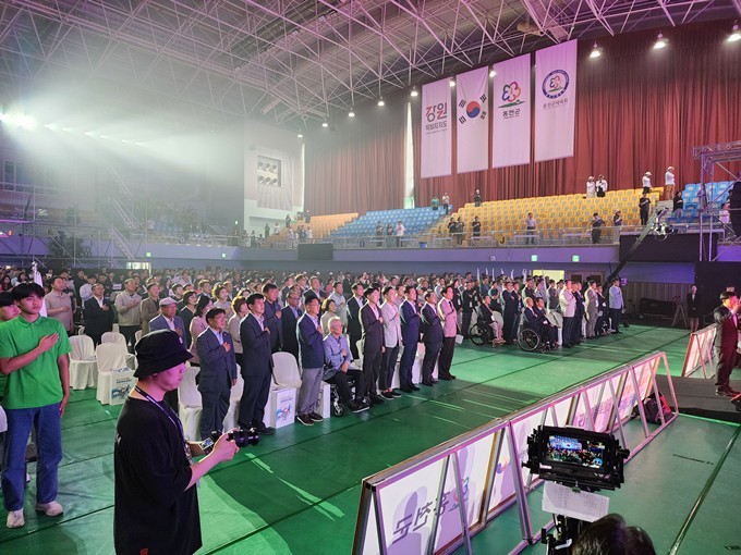 [ 타임즈 - 김시창 기자 ] 홍천군의회 박영록 의장과 용준식·황경화 의원은 6월 13일 홍천종합체육관에서 진행된 제4회 전국어울림 생활체육대축전 개회식에 참석했다.
