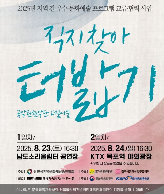 이번 공연은 한국지역문화재단총연합회가 주최한 ‘2025년 지역 간 우수 문화예술 프로그램 교류·협력사업’에 청주문화재단이 (재)전라남도문화재단과 협력·응모해 선정되면서 마련됐다.