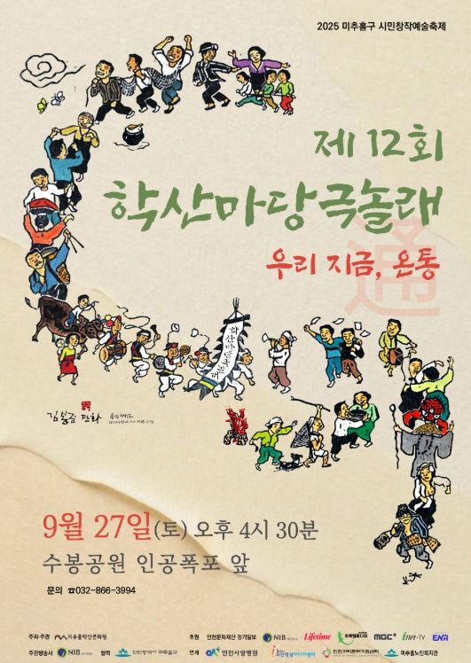[ 타임즈 - 김시창 기자 ] 인천 미추홀학산문화원이 주관하는 제12회 미추홀구 시민 창작 예술축제 ‘학산마당극 놀래’가 오는 27일 오후 4시 30분, 수봉공원 인공폭포 마당에서 개최된다.