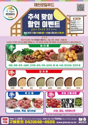 추석맞이 특별 할인 행사 및 농축산물 할인 행사에 대한 자세한 사항은 제천로컬푸드협동조합으로 문의하면 된다.