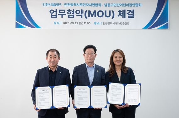 [ 타임즈 - 김시창 기자 ] 인천시설공단 인천청소년수련관은 22일 인천광역시주민자치연합회, 남동구민간어린이집연합회와 함께 청소년의 문화·예술 활동 기회 확대와 지역 내 공연장 대관장소 부족 문제 해소를 위한 업무협약을 체결했다.