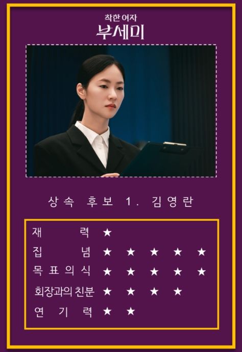 가성호 회장이 죽은 뒤 유산 상속을 둘러싸고 새 아내와 의붓 자녀간의 갈등을 예감케 하는 가운데 김영란과 가선영의 능력치를 미리 분석해봤다.