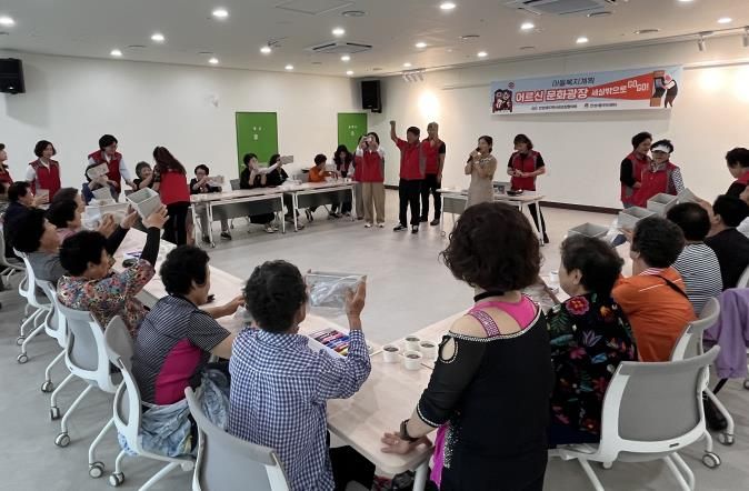 “어르신 문화광장(세상 밖으로 GO GO)” 사업은 2023년부터 실시했으며, 초고령화 사회진입으로 가족관계 단절, 우울 등 사회적으로 고립된 홀몸 어르신들에게 세상 밖으로 나올 수 있는 기회를 제공하여 정서적 고립감 해소 및 고독사 예방을 도모하는 사업이다.