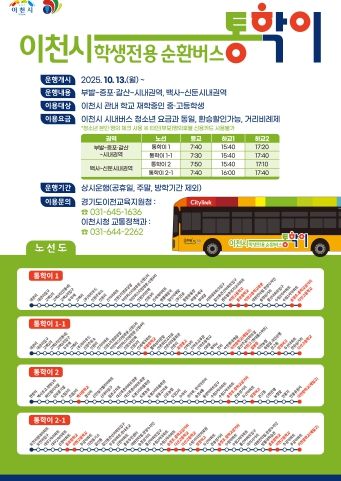 한편, 이천시는 시범운행 과정에서 나타나는 문제점과 개선사항을 면밀히 검토해 2026년 3월부터 정식으로 ‘통학이’를 운영할 예정이다.
