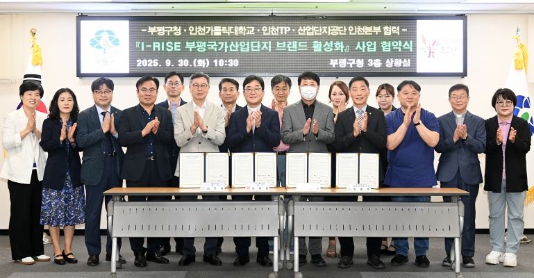 [ 타임즈 - 김시창 기자 ] 부평구는 지난 30일 구청 상황실에서 인천가톨릭대학교 ·인천테크노파크·한국산업단지공단과 함께 ‘I-RISE 부평국가산업단지 브랜드 활성화 사업’ 협약을 체결했다.