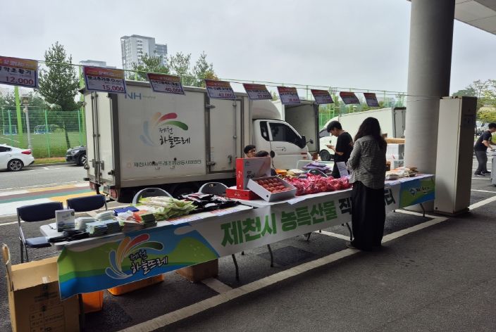 [ 타임즈 - 김시창 기자 ] 제천시는 지난 9월 30일 충북 오송단지에서 열린 식품의약품안전처 주관 직거래장터에 지역 농산물 판매업소 ‘하늘뜨레’와 함께 참여해, 오송단지 내 6개 입주기관 직원과 주민 등 2,000여 명을 대상으로 지역 특산품을 판매했다.