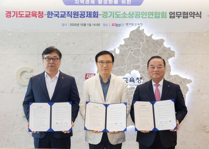 [ 타임즈 - 김시창 기자 ] 경기도교육청이 1일 남부청사에서 경기도소상공인연합회, 한국교직원공제회와 ‘지역경제 활성화를 위한 상생 업무협약’을 체결했다.