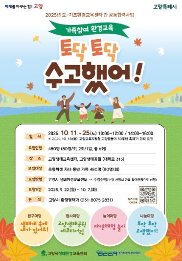 참가 신청은 고양시 생태환경교육센터 누리집에서 선착순으로 접수 가능하다.