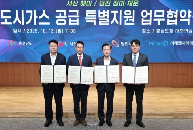 협약식에는 오성환 당진시장을 비롯해 김태흠 충남도지사, 이완섭 서산시장, 송민섭 미래엔서해에너지 대표가 참석했다.