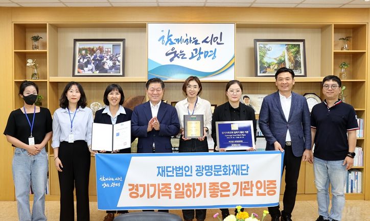 [ 타임즈 - 김시창 기자 ] (재)광명문화재단은 가족친화적인 조직문화 조성과 복지 제도 운영의 우수성을 인정받아, 경기도로부터 ‘2025년 가족친화 일하기 좋은 기업’ 인증을 받았다.