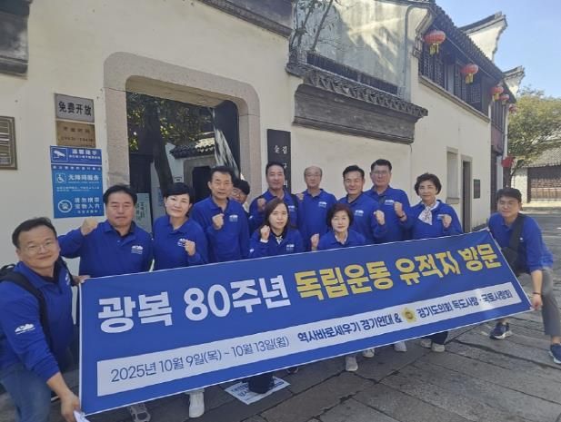 [ 타임즈 - 김시창 기자 ] 광복 80주년을 맞아 중국 내 항일 독립운동 유적지를 탐방한 경기도의회 ‘독도사랑ㆍ국토사랑회’와 ‘역사바로세우기 경기연대’가 5일간의 일정을 마치며, 선열들의 숭고한 정신을 이어받아 경기도에서 올바른 역사관을 정립하고, 영토 주권 수호를 위한 활동을 더욱 강력히 펼쳐나가겠다고 다짐했다.