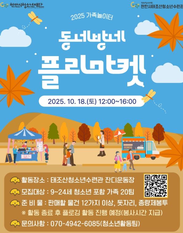 [ 타임즈 - 김시창 기자 ] (재)천안시청소년재단은 오는 18일 천안시태조산청소년수련관 잔디운동장에서 ‘동네방네 플리마켓’을 개최한다.
