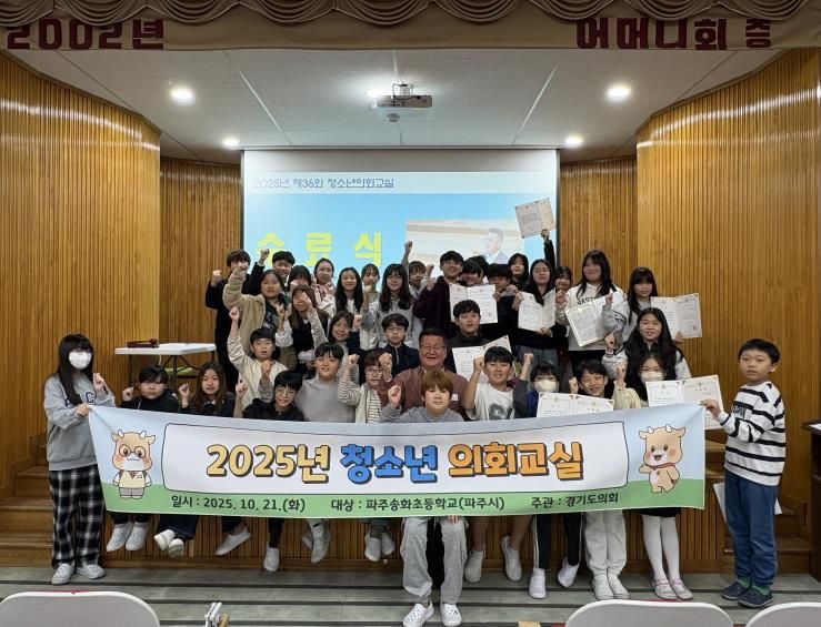 [ 타임즈 - 김시창 기자 ] 경기도의회 건설교통위원회 안명규 의원(국민의힘, 파주5)은 10월 21일 파주송화초등학교 시청각실에서 열린 ‘제36회 청소년의회교실’에 참석해 파주 송화초등학교 학생들과 함께 모의의회를 체험하며 민주주의의 가치와 의회의 역할을 함께 나누는 뜻깊은 시간을 가졌다.