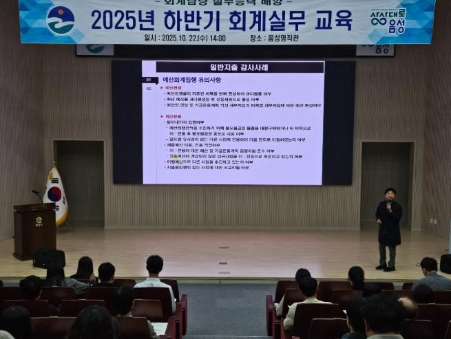 [ 타임즈 - 김시창 기자 ] 음성군은 22일 음성명작관에서 회계 담당 군 공직자 130여 명을 대상으로 ‘2025년 하반기 회계실무 교육’을 실시했다.