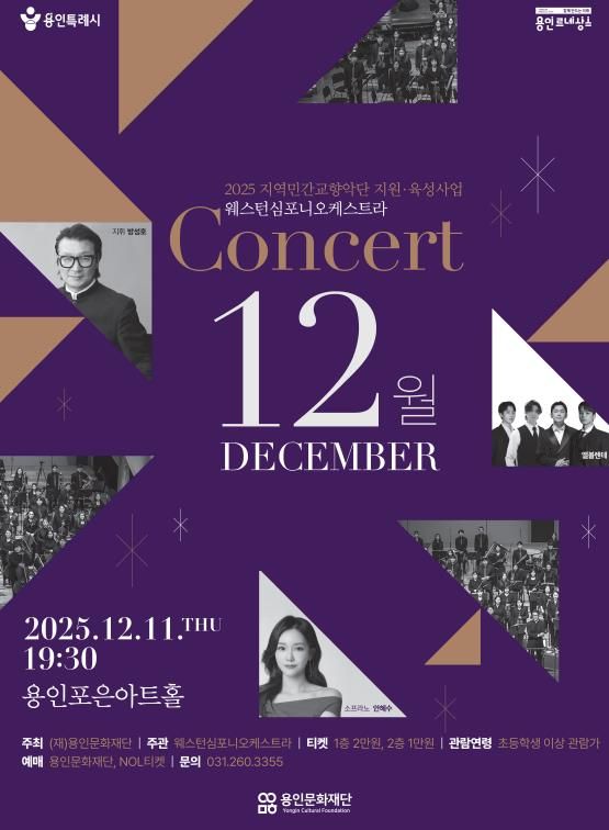 2023년부터 용인문화재단의 ‘지역 민간 교향악단 지원·육성사업’ 수행단체로 활동하고 있는 웨스턴심포니오케스트라는 이번 공연을 통해 클래식, 재즈, 팝, 영화 음악 등 가족들과 함께 즐길 수 있는 다채로운 장르의 무대를 펼칠 예정이다.