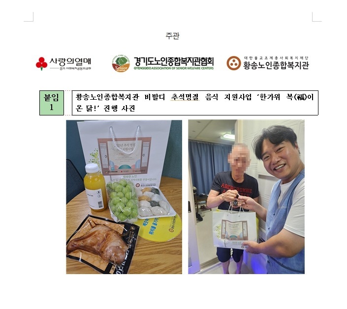 이번 ‘한가위 복(福)이 온 닭!’ 사업은 단순한 물품 지원을 넘어, 명절의 따뜻한 정을 나누며 어르신들의 외로움을 달래는 정서적 지원의 자리가 되었다. 황송노인종합복지관은 앞으로도 어르신들의 건강한 정서와 식생활을 지원하기 위한 다양한 나눔 활동을 지속적으로 펼쳐갈 예정이다.