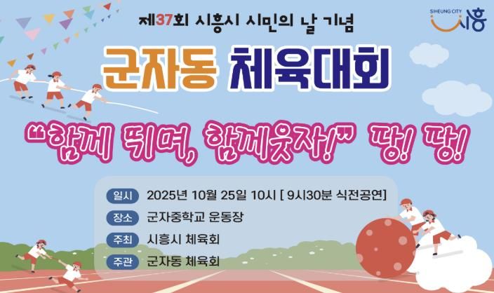 [ 타임즈 - 김시창 기자 ] 시흥시 군자동 체육회는 제37주년 시민의 날을 맞아 오는 25일 군자중학교 운동장에서 ‘함께 뛰며, 함께 웃자’ 체육대회를 개최한다.