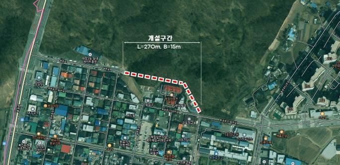 이번 사업은 지역 내 주요 생활도로망을 보완하고, 캠프롱 문화체육공원 주차장의 원활한 진출입을 돕기 위해 추진됐다. 해당 구간은 왕복 2차로, 폭 15m, 연장 약 270m 규모로 조성됐다.