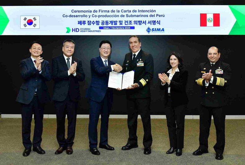 HD현대중공업은 최근 울산 본사에서 페루 국영 시마(SIMA)조선소와‘페루 잠수함 공동개발 및 건조 의향서(LOI, Letter of Intent)’를 체결했다고3일(월)밝혔다.