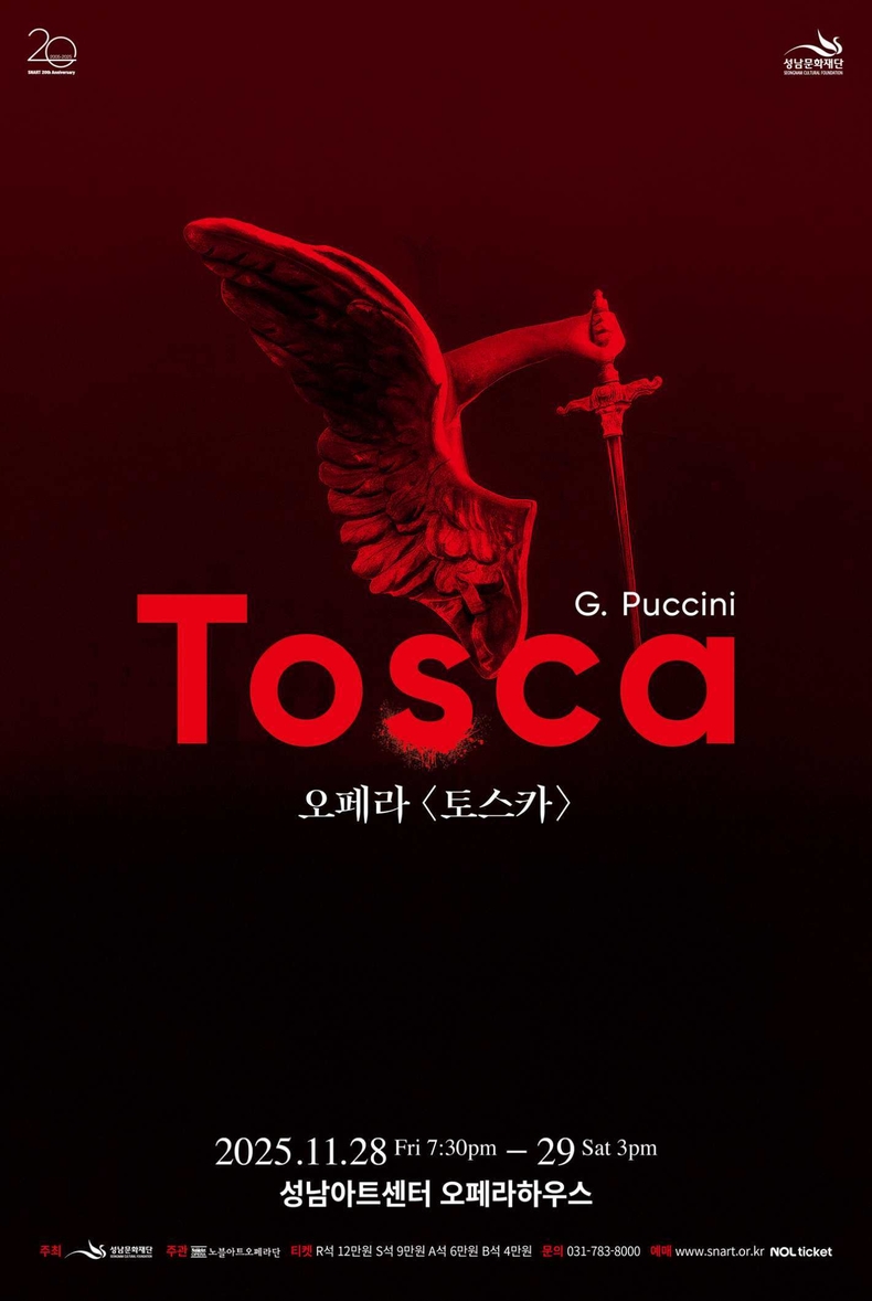 [ 타임즈 - 김시창 기자 ] 성남문화재단(대표이사 윤정국)은 성남아트센터 개관 20주년을 기념해, 푸치니의 걸작 오페라 ‘토스카’를 오는 11월 28일(금)과 29일(토) 양일간 성남아트센터 오페라하우스에서 공연한다.
