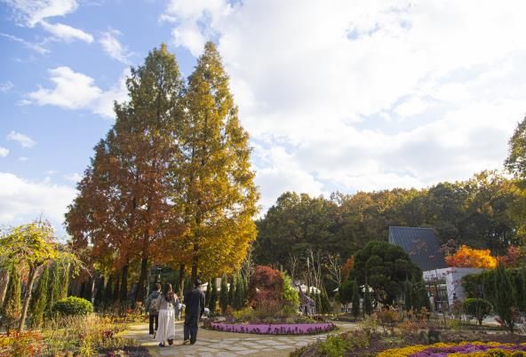 이곳을 지나면 본격적으로 무릉도원 수목원이 보인다. 주상절리 형태의 인공폭포와 사슴, 기린 등의 조형물이 설치된 토피어리원을 지나면 1,300여 종의 수목이 자라는 숲을 만나게 된다. 계절마다 다양한 꽃들이 피어나지만, 지금은 단풍이 최고 볼거리로 붉은빛과 노란빛으로 물들어있다. 숲 끝자락에는 야외 테이블에서 책을 읽을 수 있도록 ‘숲속의 작은 서재’도 마련해 놓았다. 또한 ‘누구나숲길’이라는 이름의 무장애길을 걷다보면 숲 외곽을 한 바퀴 산책할 수 있다. 무릉도원수목원은 바쁜 일상 속에서도 잠시 머물러 쉬어가기 좋은 작은 낙원이다.
