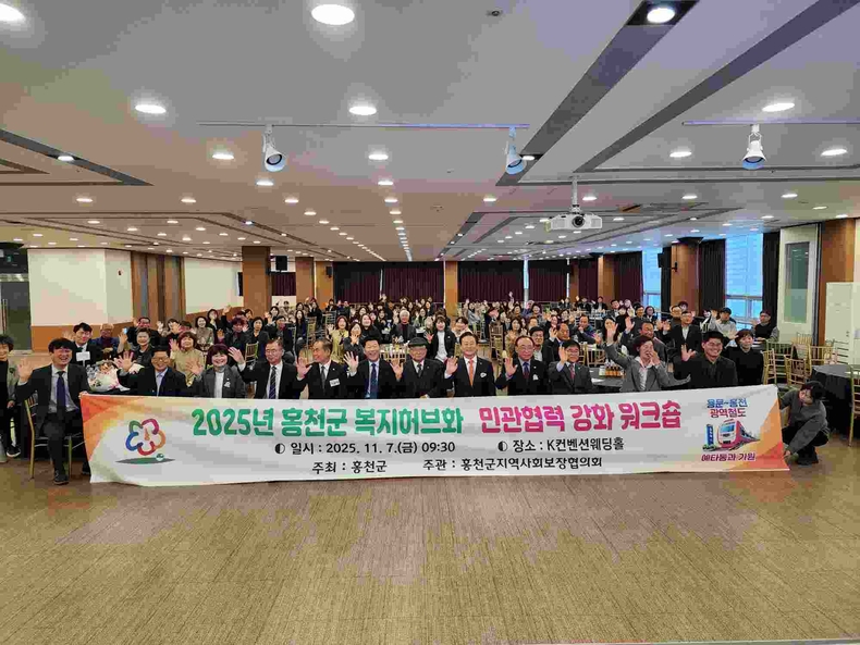 [ 타임즈 - 김시창 기자 ] 홍천군의회 박영록 의장, 용준식·이광재·김광수·황경화 의원은 11월 7일 K컨벤션웨딩홀에서 진행된 2025년 복지허브화 민관협력 워크숍에 참석했다. 이번 워크숍은 복지 사각지대 해소를 위한 민·관 협력체계 강화를 목적으로 마련됐으며, 읍·면 지역사회보장협의체 위원과 복지 담당 공무원 등 150여 명이 참석했다.