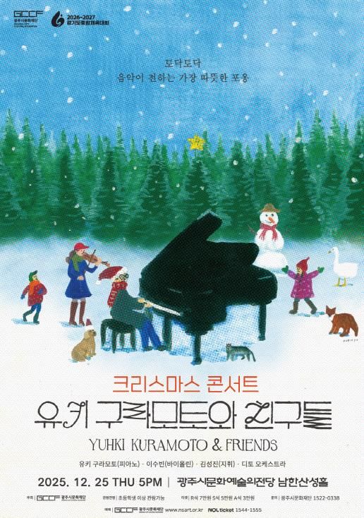[ 타임즈 - 김시창 기자 ] (재)광주시문화재단은 오는 12월 25일 오후 5시, 광주시문화예술의전당 남한산성홀에서 ‘2025 크리스마스 콘서트 '유키 구라모토와 친구들'을 개최한다.
