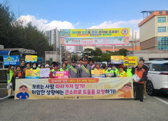 [ 타임즈 - 김시창 기자 ] 청주시는 20일 청원구 주중초등학교 일원에서 어린이 등하굣길 안전 확보를 위한 ‘어린이 약취·유인 예방 캠페인’을 실시했다.