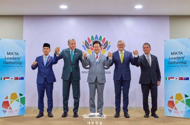 [ 타임즈 - 김시창 기자 ] 주요 20개국(G20) 정상회의 참석을 위해 남아프리카공화국을 방문한 이재명 대통령은22일(현지시간) 오후 우리나라, 멕시코, 인도네시아, 튀르키예, 호주 5개국으로 구성된 믹타(MIKTA) 회원국 정상들과 회동했다.
