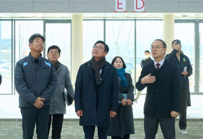김 권한대행과 이 부회장 등은 이날 실내축구장 스타디움, 숙소동, 숙소동 식당 등을 둘러봤다.