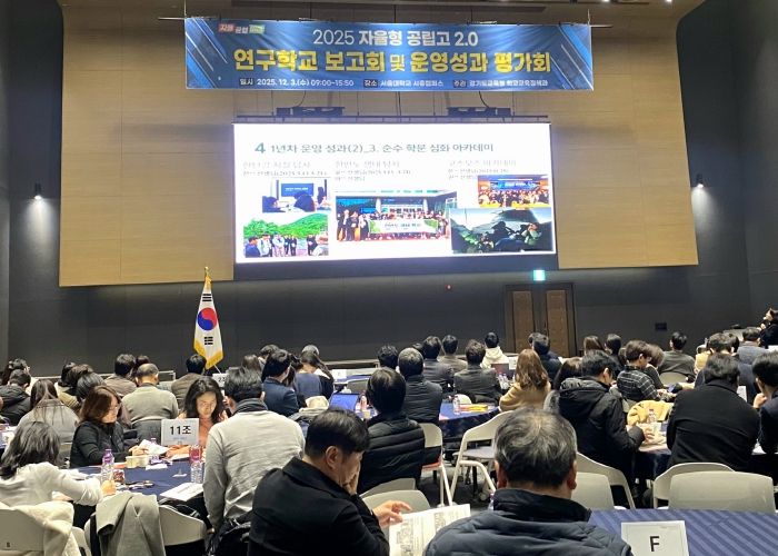 [ 타임즈 - 김시창 기자 ] 경기도교육청이 3일 ‘2025 자율형 공립고 2.0 연구학교 보고회 및 운영성과 평가회’를 개최했다. 지역과 함께 만들어가는 자율형 공립고 2.0 연구 및 운영 사례 공유로 공교육의 경쟁력을 제고하고자 마련한 자리다.