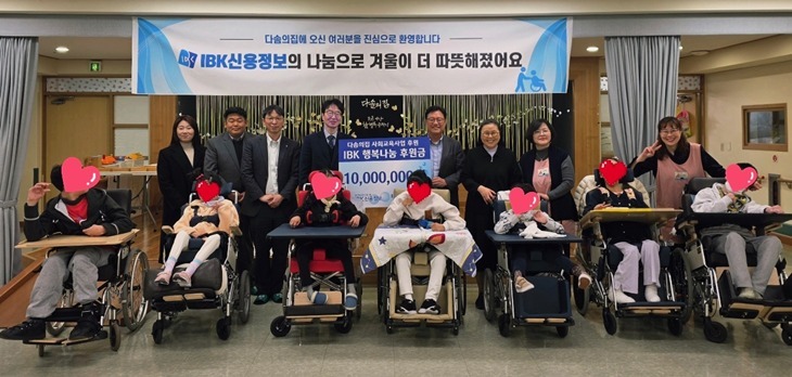 IBK신용정보는 지난 달 26일 장애인주간보호시설 다솜의집을, 27일은 아동복지시설 좋은집을 찾아 후원금 각 1,000만원, 총 2,000만원을 전달했다.