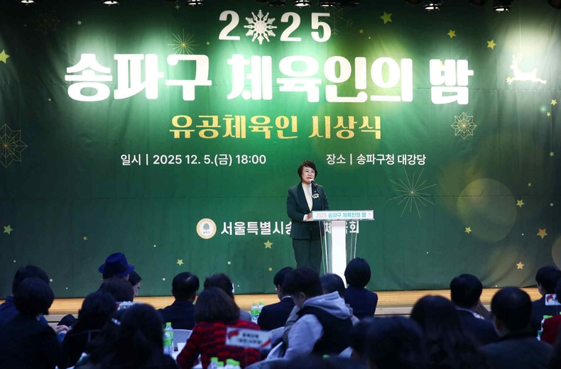 [ 타임즈 - 김시창 기자 ] 서울특별시 송파구의회(의장 이혜숙)는 12월 5일(금) 송파구청 대강당에서 개최된 ‘2025 송파구 체육인의 밤’ 행사에 참석해 한 해 동안 송파 체육 발전을 위해 힘써 온 체육인들을 격려했다.