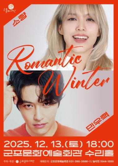 [ 타임즈 - 김시창 기자 ] 군포문화재단은 오는 12월 13일 오후 6시, 군포문화예술회관 수리홀에서 연말 기획공연 “소향×민우혁 콘서트 'Romantic Winter'”를 개최한다.