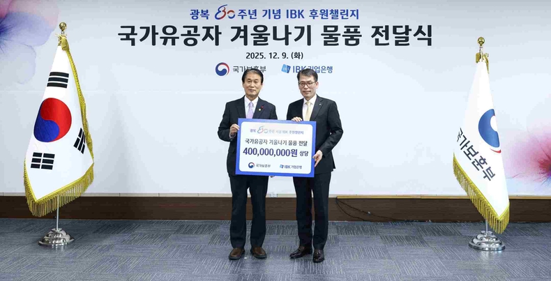 [ 타임즈 - 김시창 기자 ] IBK기업은행(은행장 김성태)은 9일 국가보훈부 서울지방보훈청에서 ‘광복 80주년 기념 IBK후원챌린지’에 따른 국가유공자 겨울나기 기부물품 4억원 전달식을 진행한다고 밝혔다.