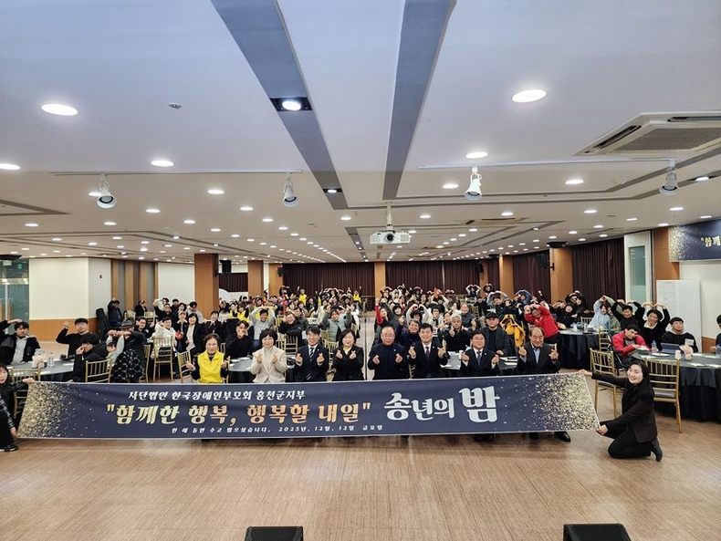 [ 타임즈 - 김시창 기자 ] 홍천군의회 박영록 의장, 최이경 부의장, 나기호 의원은 12월 12일 K컨벤션에서 진행된 한국장애인부모회 홍천군지부 송년의 밤 행사에 참석했다. 이날 행사에는 장애인 부모와 가족을 비롯해 활동지원사 등 현장에서 함께해 온 구성원들이 참석해 한 해의 노고를 나누고 서로를 격려했다.