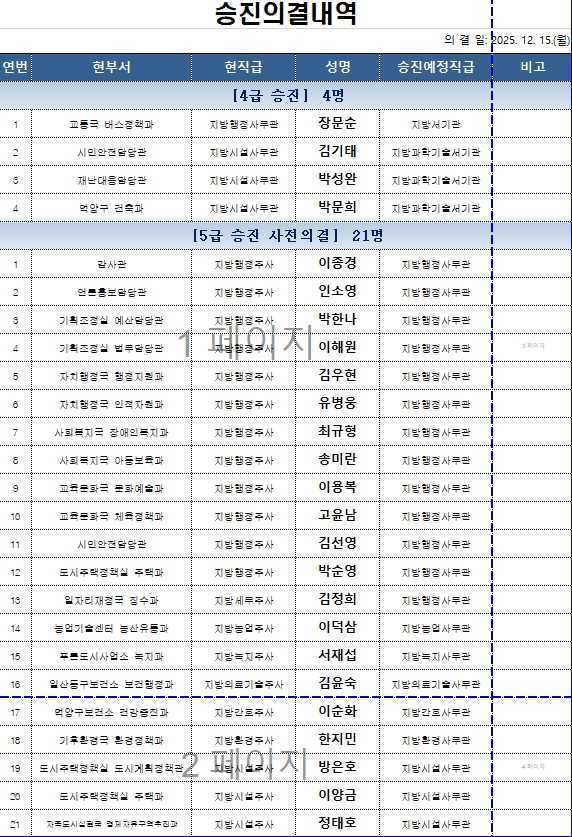 2025년 제9차 고양시인사위원회(4급 승진 및 5급 승진) 의결