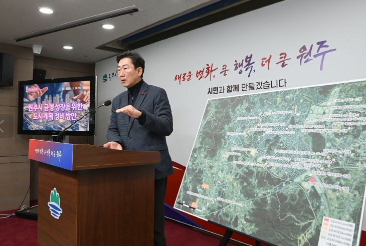 원강수 원주시장은 “AI·반도체 등 첨단 산업도시로 변모 중인 원주가 변화의 동력을 유지하기 위해서는 시대에 맞는 도시계획의 옷을 입어야 한다”며, “이번 정비 방안은 도시개발 활성화를 통해 도시를 정비하는 것으로, 원주가 중부내륙 거점도시로 성장하는 중요한 발판이 될 것”이라고 밝혔다.