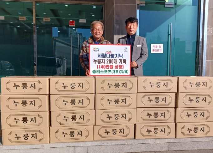 승리스포츠는 이천시 창전동에 소재한 운동기구 판매업체로 이천 내 여러 지역에 누룽지를 기탁해 오고 있다.