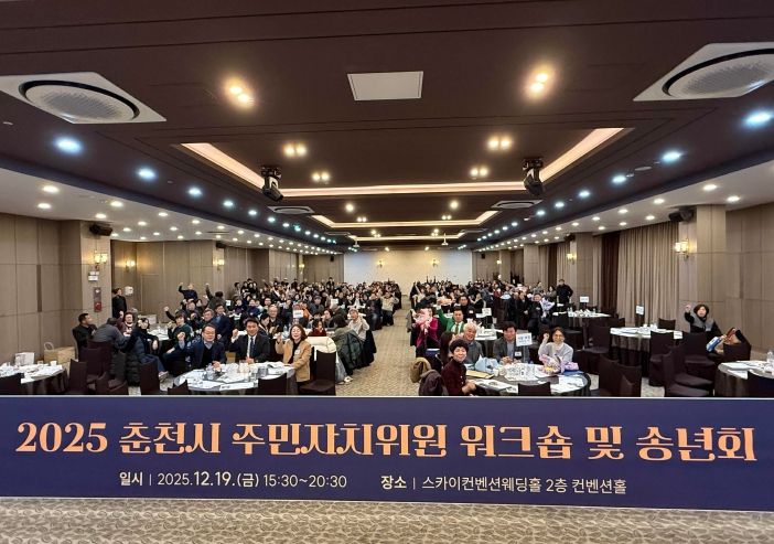 [ 타임즈 - 김시창 기자 ] 춘천시 주민자치협의회(회장 엄상필)는 한 해 주민자치 활동을 되돌아보고 새해 도약을 다짐하는 ‘2025 춘천시 주민자치위원 워크숍 및 송년회’를 개최했다.