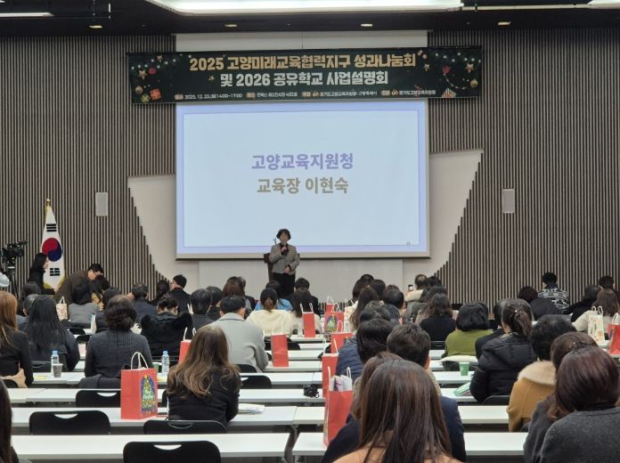 [ 타임즈 - 김시창 기자 ] 경기도고양교육지원청은 2025년 12월 23일 킨텍스 제2전시장(401~403호)에서‘2025 고양미래교육협력지구 성과나눔회 및 2026 공유학교 사업설명회’를 개최했다. 이날 행사에는 고양 관내 유·초·중·고 교사, 학교관리자, 학생, 협력 마을활동가 등 총 400여 명이 참석해 고양교육의 미래를 함께 모색했다.