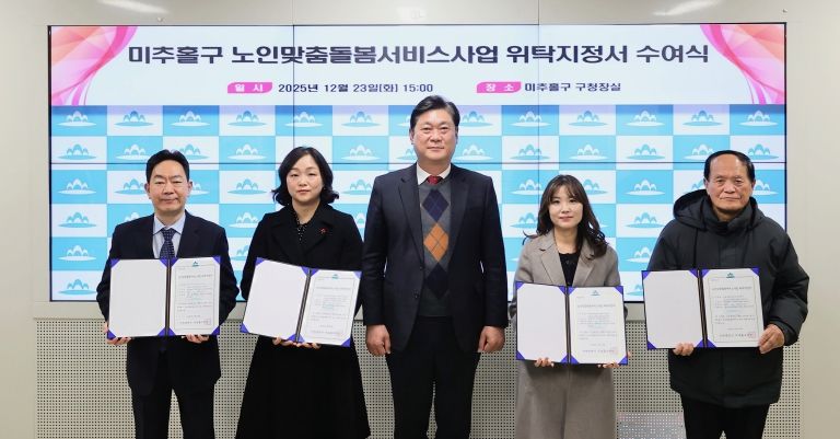 [ 타임즈 - 김시창 기자 ] 인천 미추홀구는 23일 구청장실에서 ‘노인 맞춤 돌봄서비스 사업 위탁지정서 수여식’을 개최했다.