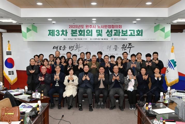 [ 타임즈 - 김시창 기자 ] 원주시 노사민정협의회는 23일 오후 5시 시청 10층 대회의실에서 제3차 본회의 및 성과보고회를 개최했다.