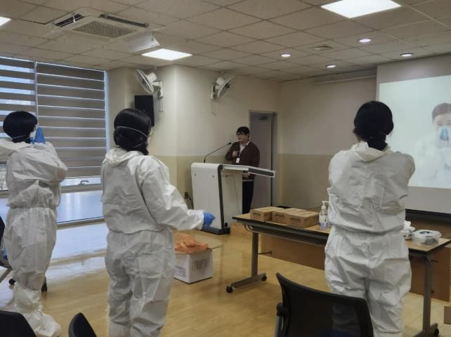 이번 교육은 감염병 발생 시 신속하고 안전한 대응을 위해 마련됐으며, 보건소 직원들이 개인보호구(Level D 보호복, N95 마스크, 고글, 덧신 등)의 착용과 탈의 과정을 직접 실습하는 방식으로 진행됐다.
