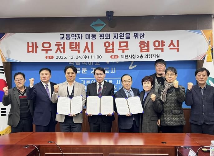 이번 업무 협약에 참석한 제천시, 청풍호콜센터, ㈜티머니 모빌리티 관계자들은 바우처택시 제도의 안정적인 도입과 효율적인 운영을 위해 상호 협력하여 2026년 1월 중 바우처택시를 운행하기로 약속했다.