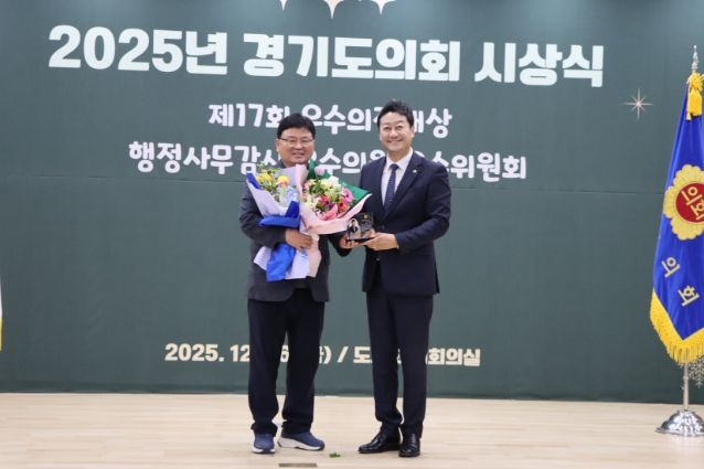 [ 타임즈 - 김시창 기자 ] 경기도의회 교육기획위원회 이택수 의원(국민의힘, 고양8)과 성기황 의원(더불어민주당, 군포2)이 26일 열린 2025년 경기도의회 시상식에서 ‘2025년 행정사무감사 우수위원’으로 선정됐다.
