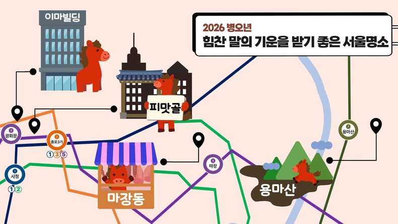 □ 서울관광재단(대표이사 길기연) 홍보팀은 1월을 맞이하여, 한 해의 시작을 힘차게 열어줄 힘찬 말의 기운을 받기 좋은 서울 도심 여행 코스를 제안한다. 붉은 말의 해를 상징하듯 새벽의 기운을 가장 먼저 여는 용마산 일출로 의미를 더하고, 말을 기르던 자리라 이름붙여진 마장동과 도심 속 오래된 골목 피맛골에서 새해를 시작하는 삶의 에너지를 채우는 여행을 소개한다.