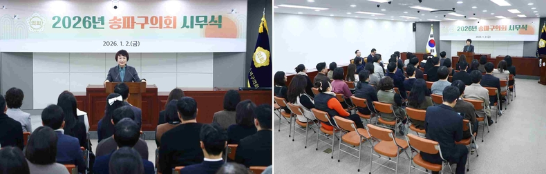 [ 타임즈 - 김시창 기자 ] 송파구의회(의장 이혜숙)는 2026년 1월 2일(금) 오전 10시 송파구의회 제1회의실에서 2026년 시무식을 열고 새해 공식 업무를 시작했다.